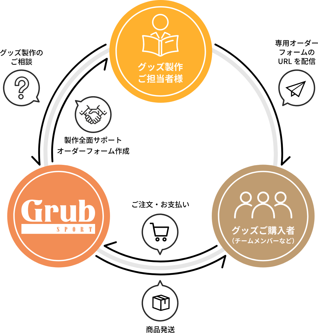 ご購入者様が個別にGrubSPORTへお支払いいただけるので、ご担当者様が個別集計や集金をする必要がありません。